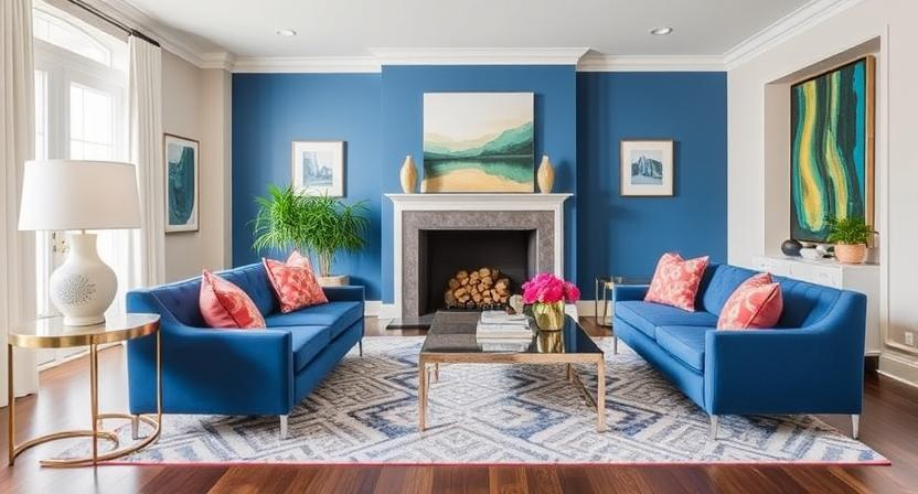 • Establish a focal point by using bold colors to draw the eye towards specific areas in the room
