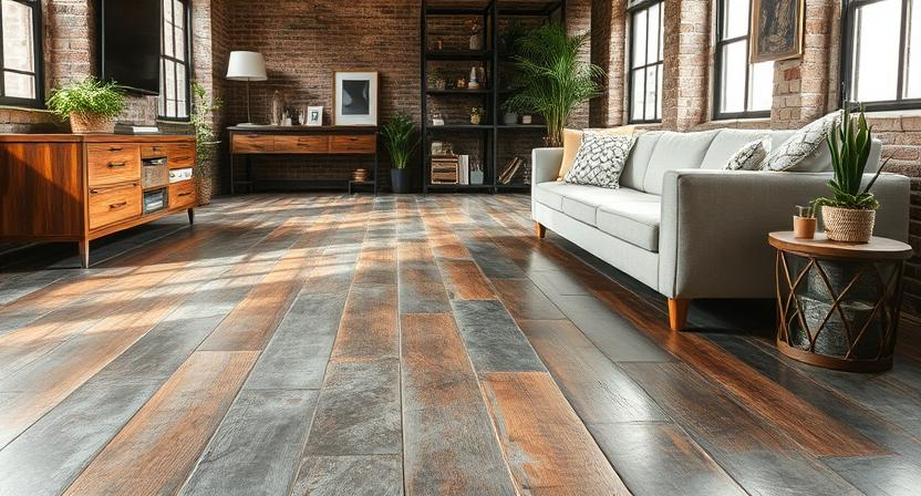 • Options include vintage ceramic tiles, reclaimed wood, and marble tiles